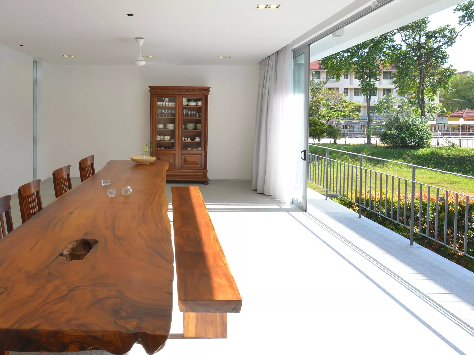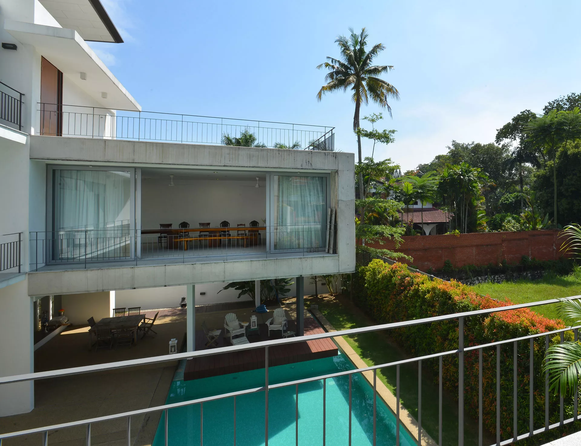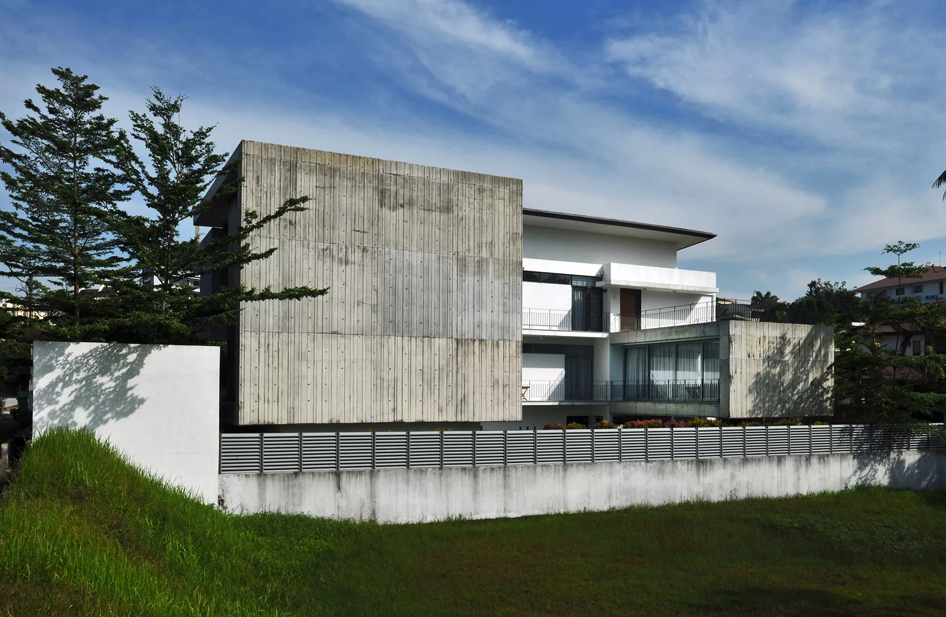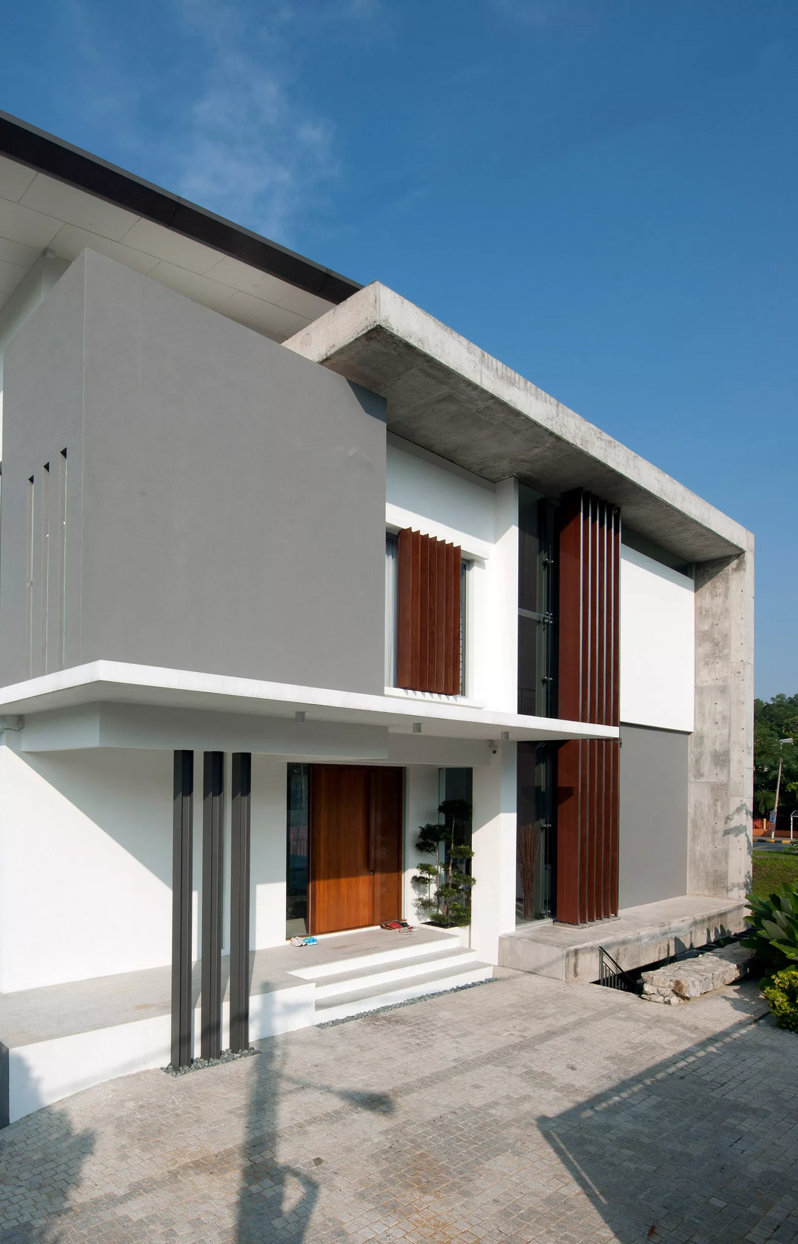 The Bruas House is located within the leafy residential enclave of Bukit Damansara, set on a rectangular site that gently slopes away from the street. The project responds to its topography and surroundings through a carefully calibrated approach to privacy and orientation.