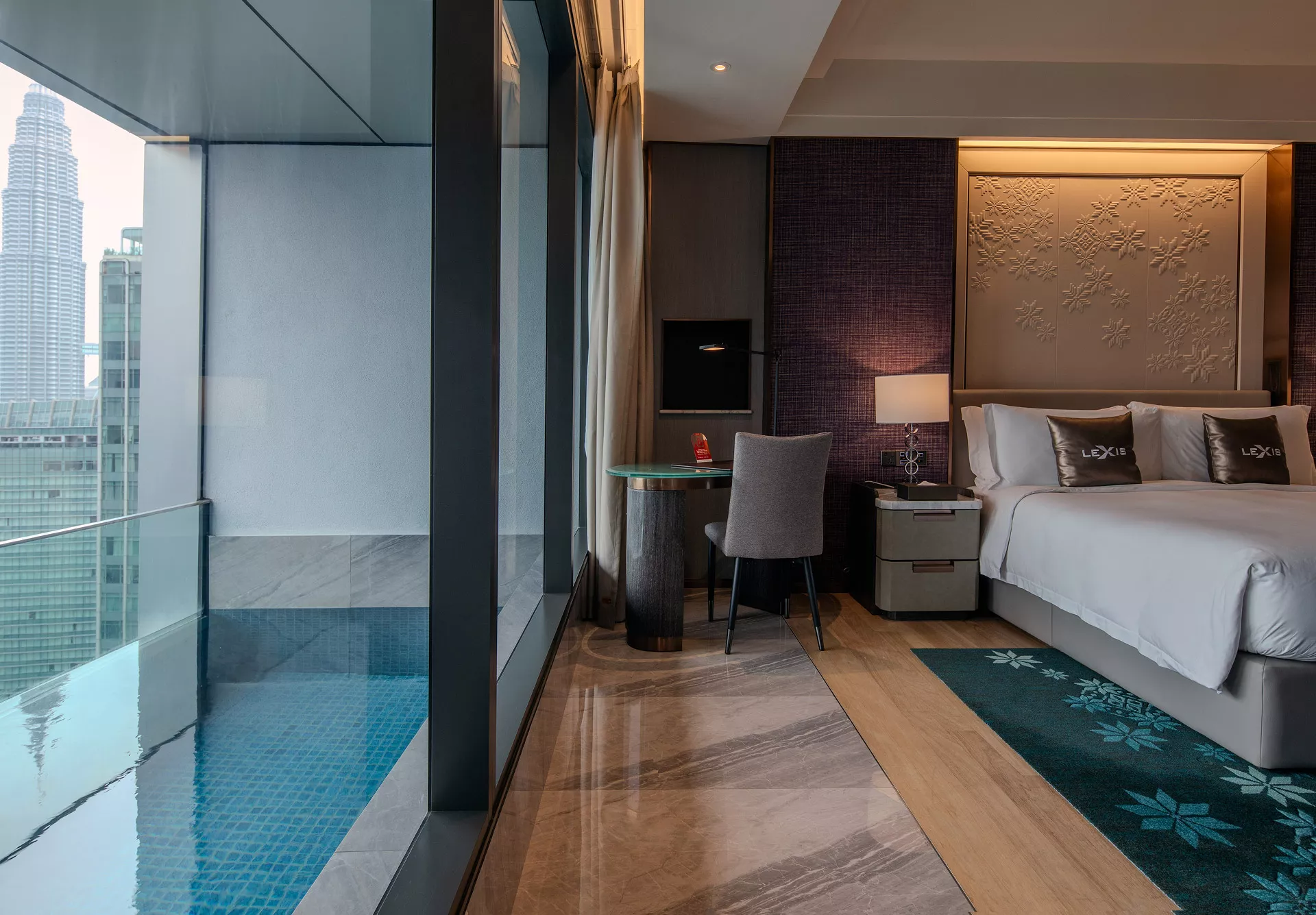 Imperial Lexis comes with a prestigious city-center address and strong MRT Kajang Line connectivity, enhanced by dual access points—street level from Jalan Kia Peng and upper-level entry from Changkat Kia Peng. The tower’s slender architectural profile accommodates both hotel suites and serviced residences within a unified vertical composition. A seven-storey podium consolidates recreational amenities, while the building’s 439 suites and residences are organised to maximise views, privacy, and spatial efficiency.