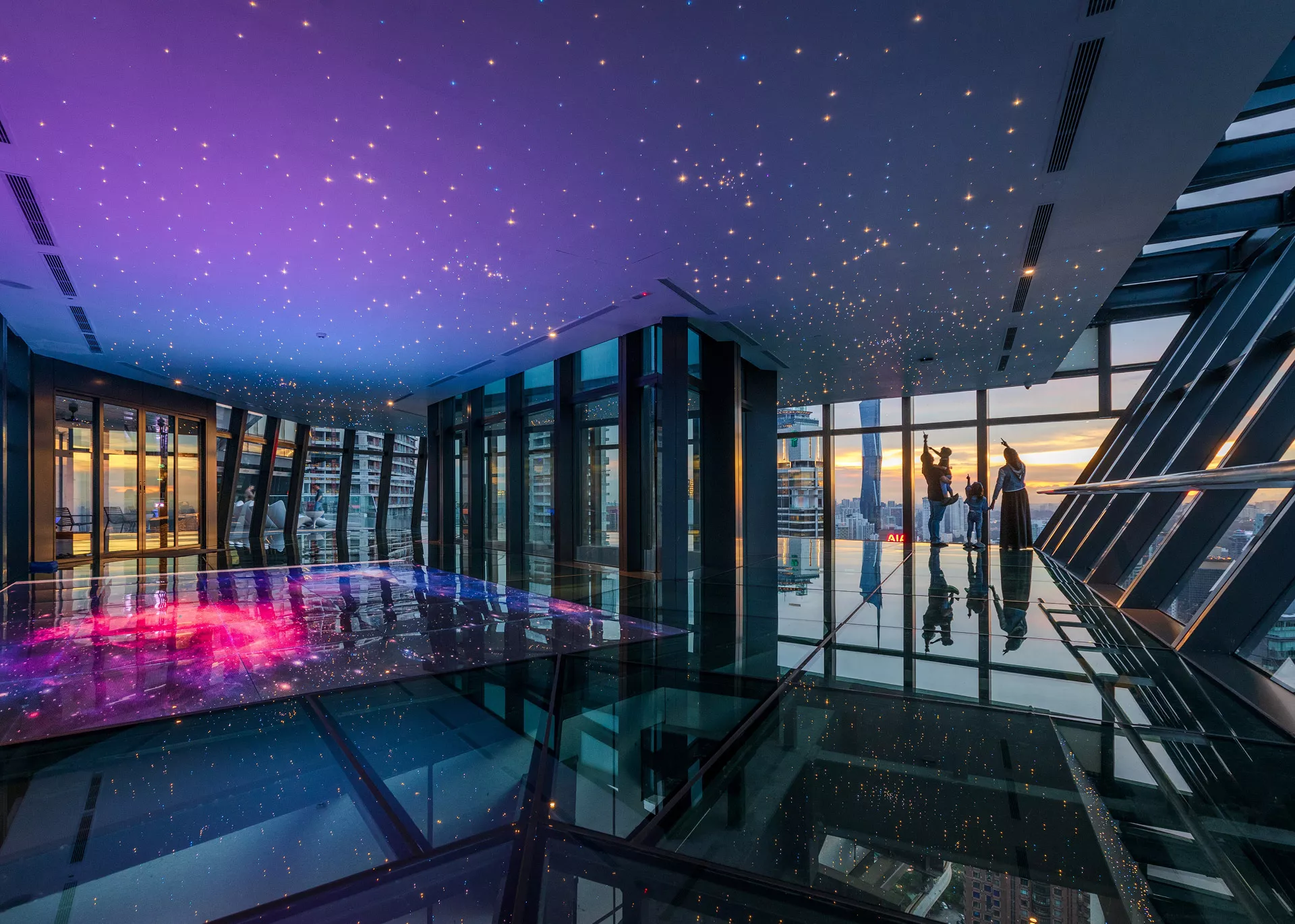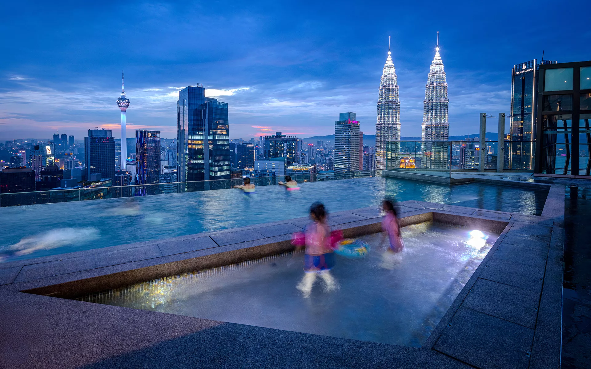 Crowning the tower, the rooftop level hosts a sky pool and recreational deck strategically oriented to capture panoramic views of the Kuala Lumpur skyline. This elevated retreat offers a serene escape from the city below. Complementing the leisure spaces, a 360-degree rooftop bar and a suspended skywalk create dramatic experiential moments, transforming the roof into a destination that celebrates height, perspective, and urban spectacle.