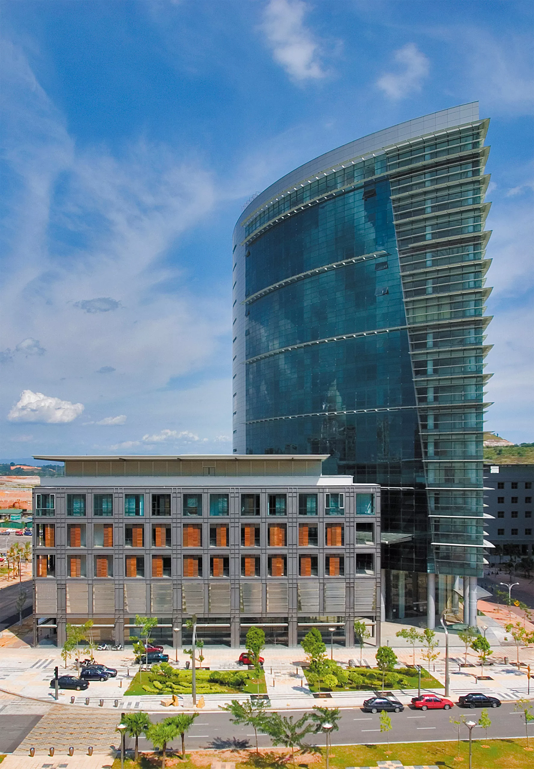 Sited at the northern end of Putrajaya’s ceremonial axis, the Ministry of Natural Resources and Environmental Sustainability offers a refined architectural response to climate, place, and civic identity. Completed in 2006 for Putrajaya Holdings, the project forms part of a quartet of ministry towers whose collective composition traces an interlocking Islamic geometric motif across adjacent lots. Within this broader urban choreography, the building establishes a gateway between the city’s formal governmental district and its emerging commercial realm.