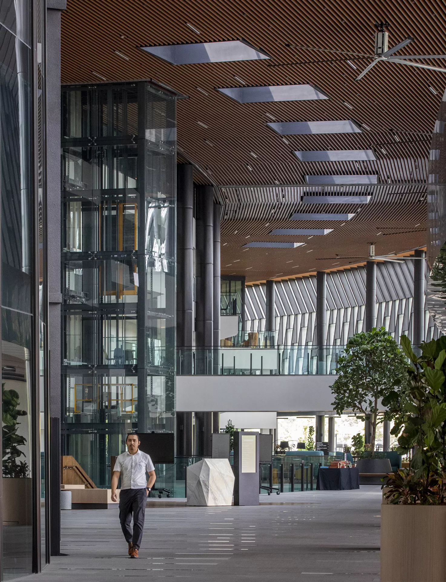 Overall, warm material palettes and thoughtful spatial zoning blur the boundaries between indoor areas and the surrounding landscape, to create a dynamic environment that encourages collaboration and community-building, reflecting PETRONAS’ progressive and people-centric work culture.