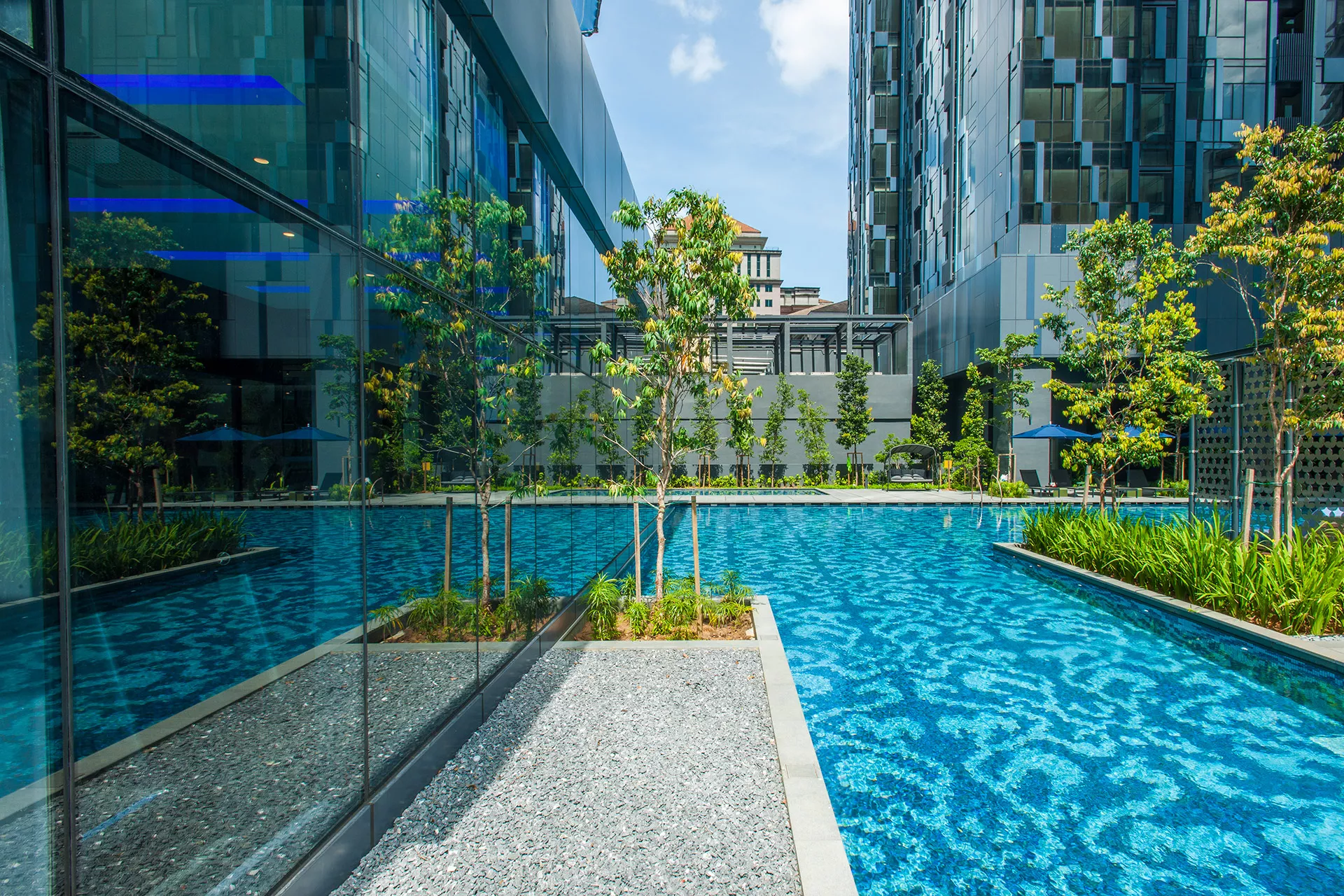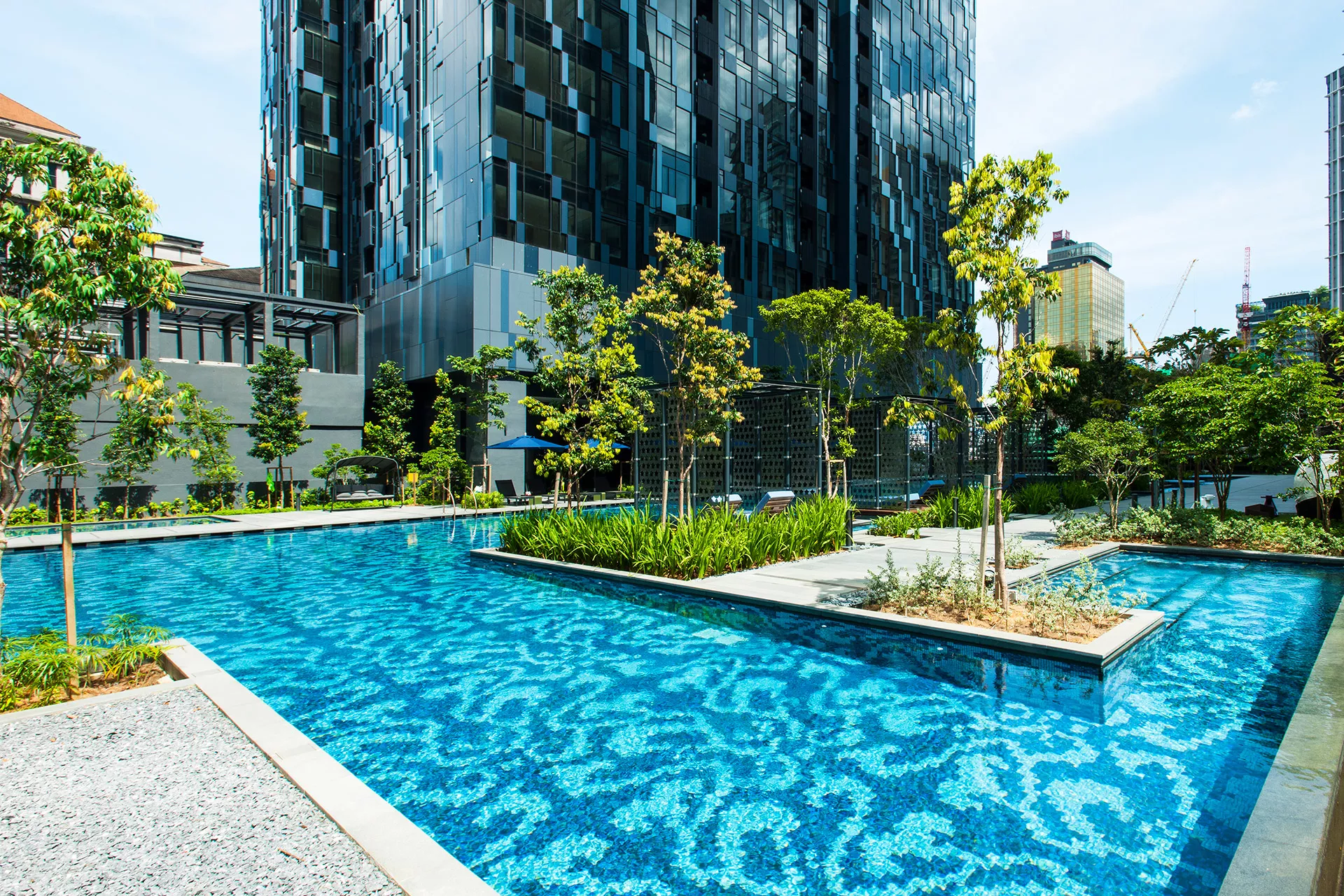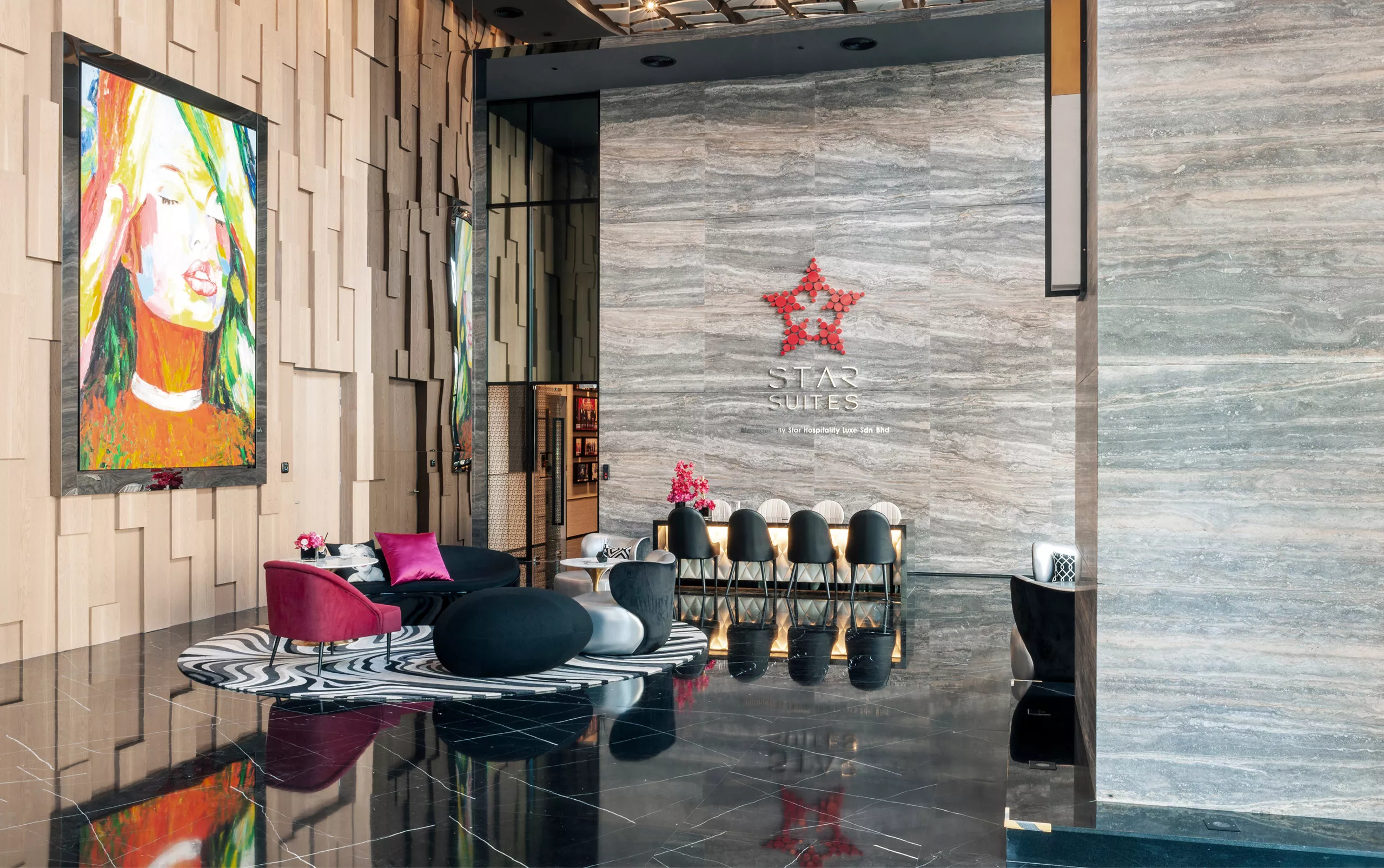Star Boulevard revitalizes the surrounding streetscape, forming a walkable, mixed-use district anchored by approximately 12,000 m² of retail space and 9,300 m² of lifestyle facilities. At street level, widened pedestrian walkways and active retail frontages foster vibrancy, while landscaped courtyards, water features, sculptural elements, and green pockets provide spaces of respite. Each tower drop-off is carefully designed as a crafted arrival sequence, reinforcing a sense of luxury and place. By integrating retail, public spaces and permeable pedestrian routes, Star Residences cultivates a more animated, connected, and economically burgeoning urban environment.