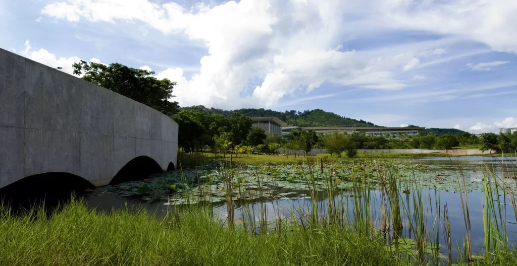 Star Residences draws inspiration from regional artisanal traditions, including textiles, pattern work, and architectural ornamentation, reinterpreted through a contemporary lens. Its signature star-shaped kinetic feature—comprising 88,000 stainless-steel plates—animates the development with a shimmering kinetic façade that has garnered international acclaim. Vertical Mondrian-inspired curtain walls add depth and rhythm, while rooftop mosaic murals depicting motifs such as polar bears, butterflies, and pandas serve as iconic markers on the Kuala Lumpur skyline.